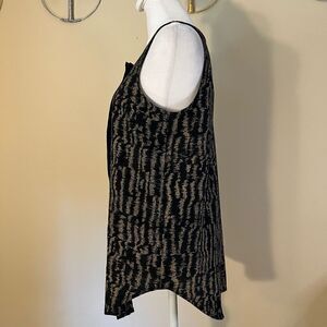 Collective Concepts Brown Black Abstract Pleated Sleeveless Blouse Small