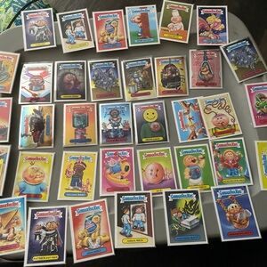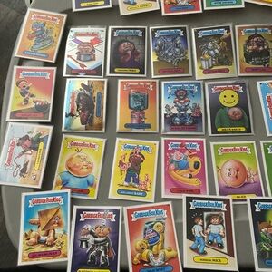 Official collectible trading cards. Bright assorted colors featured across the card fronts, including yellow, pink, blue, green and purple. Great for collectors and kids who love nostalgic, humorous art. Easy to add to collections or display.