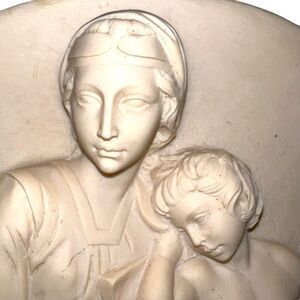 This beautiful collector plate features the Italian Madonna Pensosa design, created by Alberto Santini in 1978. The plate is a limited edition piece, produced using the pottery technique on high-quality alabaster material. The beige color and art pottery production style make this plate a unique addition to any collection. The Bradford Exchange has recognized this vintage piece as a valuable decorative collectible. The plate's Italian culture and late 20th-century era make it a rare find for collectors. Add this stunning collector plate to your collection today.