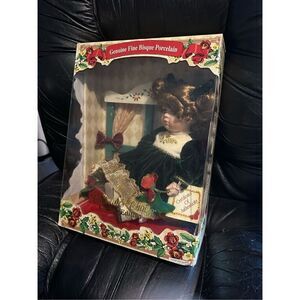 Collectors Choice Genuine Bisque Porcelain With Wood Sitting Table W/ COA New