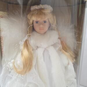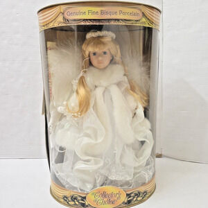 Collector’s Choice Porcelain Doll Blonde Angel in White Dress 16” w/ Box & COA