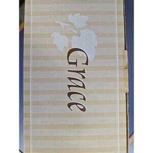 The Collector's Edition 16" Porcelain Doll GRACE is a vintage-inspired country chic doll featuring blonde hair with pigtails, blue eyes, and a light complexion. This doll is part of the Collector's Edition franchise and comes with original packaging, a straw hat, and a stand. Measuring 16 inches in height, this porcelain doll is designed for collectors and would make a nice gift for a young person. Made of porcelain and cloth, with a timeless charm that appeals to both adult and teenage collectors.
