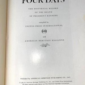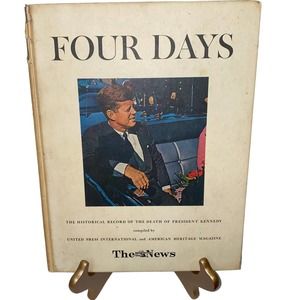 Four books covering all things John F. Kennedy- His youth and family background, his political rise to eventual US Presidency, Jackie Onassis, and his 1963 assassination and the aftermath. Two were written and published in 1964, hardcover 'Four Days' and softcover 'The Story of John F. Kennedy'. Four Days has spine wear to top portion as seen in pics, The Story is in great condition but there is a piece of sticker on cover left years ago, I believe. Also included is a 1988 coffee table book 'Life in Camelot' in softcover and 1983's 'Kennedy A Time Remembered' in hardcover with dust jacket. Both are in good to excellent condition. All 4 are First Edition.