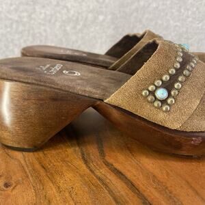 🤎 Colleen Cordero Womens 6 Brown Suede Clogs Wood Heel Turquoise Boho 🤎