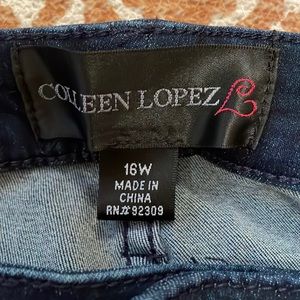 Colleen Lopez Dark denim skinny jeans. 78% COTTON / 19% POLYESTER 3% SPANDEX Waist: Approx 19 Inches Inseam: Approx 28 Inches Condition: Very Good