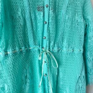 Colleen Lopez Bit of Romance Cover Up Womens XL Blue Green Lace Fairycore Tunic