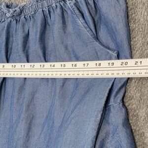 Colleen Lopez Dress Womens M Blue Chambray Off The Shoulder Bell Sleeve Boho.