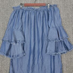 Colleen Lopez Dress Womens M Blue Chambray Off The Shoulder Bell Sleeve Boho