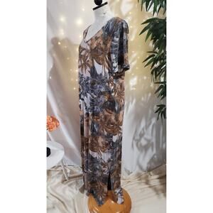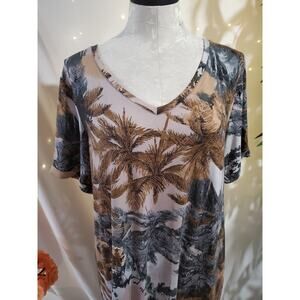 Colleen Lopez EveryWear Tropical Palm Tree V-Neck Short Sleeve Maxi Dress Size M Pocket Island