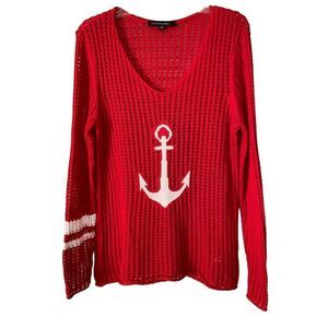 Colleen Lopez M Red Crochet Anchor Pullover Sweater V-Neck Casual