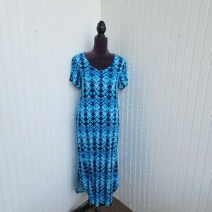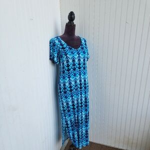 Colleen Lopez Maxi Dress Womens Navy Blue Stretchy Short Sleeve V-Neck Long XSP