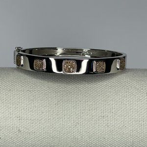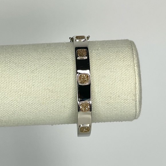 Gorgeous Champagne Diamonds accent this traditional wardrobe staple bangle bracelet, which is set in the pavé style in cushion shaped stations. This item is new and unworn but does not include the original packaging.