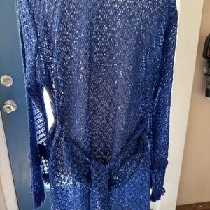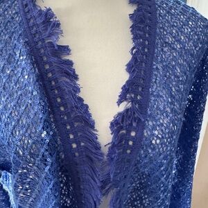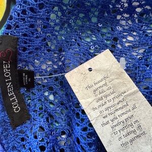 Brand new Colleen Lopez Sparkle Net Topper with fringe trim. Size is XL and color is Santorini blue.
