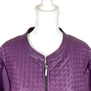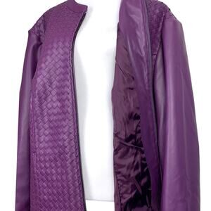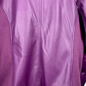 Colleen Lopez Women's Size 2XL Purple Faux Leather Knit Sides Zip Up Jacket
