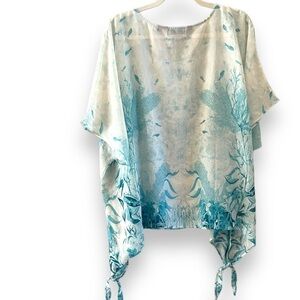 ๐๐๐ฌ Colleen Lopez Women's Chiffon Poncho Top Blouse Under the Sea Aqua Blue M