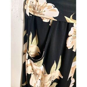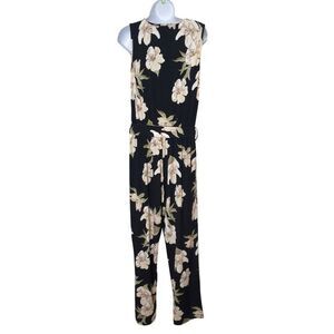 Colleen Lopez Floral Sleeveless Jumpsuit M Black Beige Elastic Tie Waist Pockets