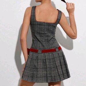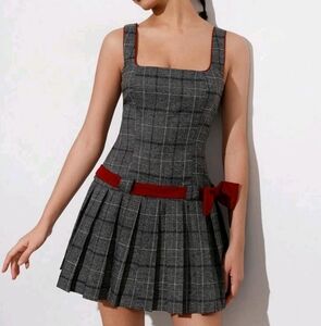 Collegiate Vintage Versatile Cute Bow Contrast Plaid Print Sleeveless Square