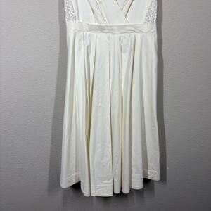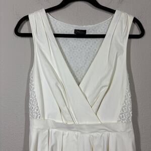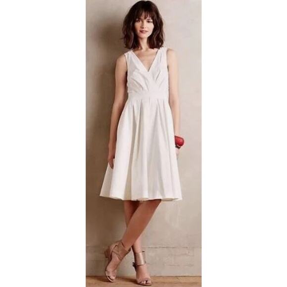 Collette Dinnigan Anthropologie Size 6 Pleated Trellis Fit & Flare Dress White Cotton Blend Surplice V-Neck Hourglass Sleeveless Stretch