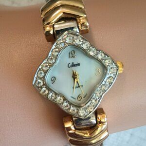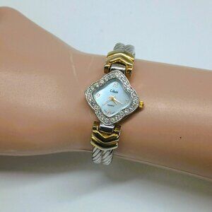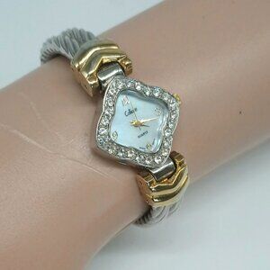 Collezio Two Toned Cuff Watch Women's Rhinestone Bezel Adjustable Cable Band. New Battery
