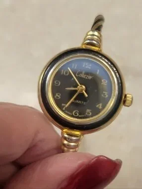 Vintage women's gold tone and black enamel cable band quartz bangle watch. See photos as it is part of description ..Note it is NOT a Juliana..would not let me put in the brand..see watch face for correct name of watch