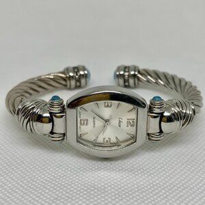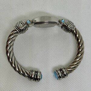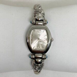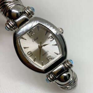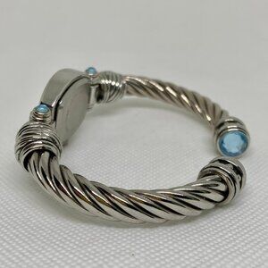 Collezio women silver tone watch 22mm quartz analog blue crystals cuff bangle bracelet size 7”, in good condition battery installed