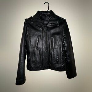 Collezione Black Moto Leather Jacket Zip Front Pockets