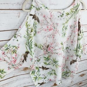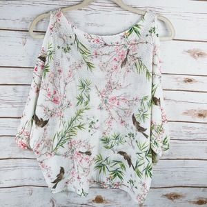Collezioni Leonardo Italy Top Size S Floral Birds Cold Shoulder Open Knit 103