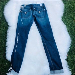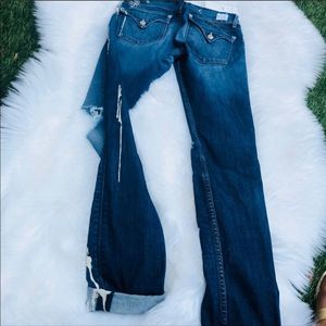 These where stained by cement, as is. Might and might not come out not sure what happened to them I’m guessing they were experimental design by an individual. Distressed on the knees with tags. Measurements: Inseam : 28” long Front Rise: 7” long