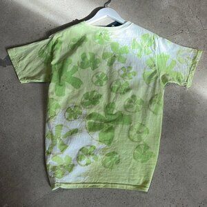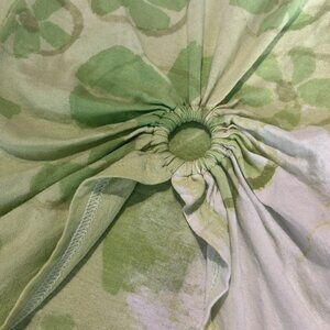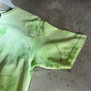 The Flower Patch t-shirt from Collina Strada’s 2021 Spring and Summer collection is made in a Lime green jersey tie dyed with a tonal floral pattern. it features short sleeves, a rib knit crewneck collar, gathering and a center ring cut-out at the front, and tonal stitching.