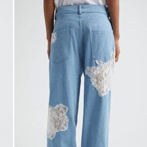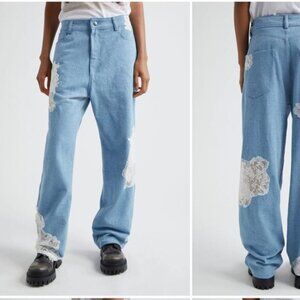 Collina Strada NWT Mikaela Beaded Lace Patched Straight Leg Jeans Medium/28