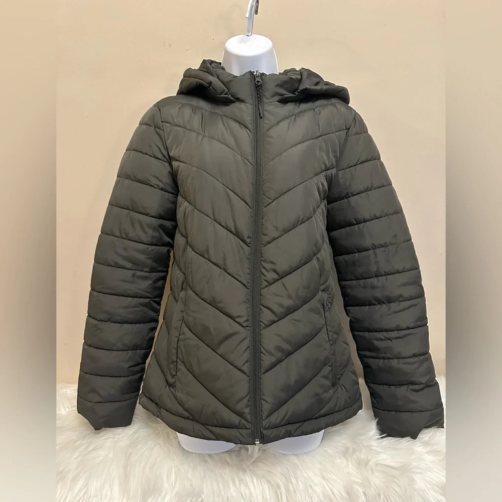 Purchased in Europe, in good condition—worn a few times during autumn and winter. Functional design with two side zippered pockets. The tailored shape provides a flattering fit. The hood is detachable, offering versatility in styling, and it looks great both ways. The color is exactly as shown in the pictures.