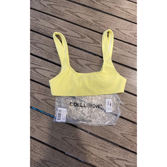 Collusion Ribbed Bikini Top New never worn/ original packaging Color: Yellow Size: 6US 92% Polyester 8%Elastane