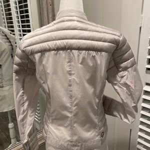 Light weight Colmar jacket. Puffy panels combined with lightweight sheer panels. Zippered cuffs.