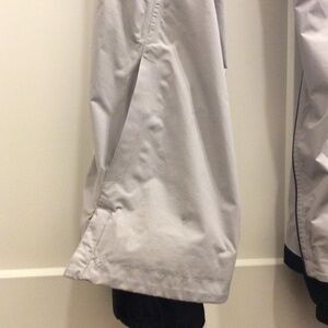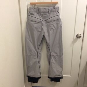 Barely worn- LIKE NEW- waterproof snow pants from Colombia. Adjustable velcro on waist for custom fit, built in gaiters each leg, one sneaky pocket on the rear left lower leg, plus 2 front pockets/2 back pockets (see "lift" zipper pull that is broken - zipper pocket still fully functional). Neutral color goes with any color ski/snowboard jacket, flattering lines for feminine fit, cozy moleskin type fabric at the inside of the waist & covering the backside (for those sits in the snow :). Winter is coming - be ready with these cute waterproof snow pants!