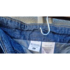 Elevate your casual wardrobe with this Colombia denim mini skirt in size L. The skirt features a solid blue color, zip closure, and side slits for added style. The tie waist and pockets add a touch of practicality to the skirt, making it perfect for a day out with friends or a casual date. Made of machine-washable cotton denim, this mini skirt is perfect for summer, fall, and spring seasons. Get this stylish denim mini skirt today and add some flair to your casual outfits! Waist measurement 36-1/2 inches, length measurement 19-3/4inches waistline to hemline