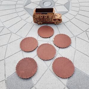 In excellent preowned intact condition with no cracks. **Disclosure: there is an aged appearance / some of the coasters' scalloped ridges undersides have bald/peeling spots. Please see pictures.