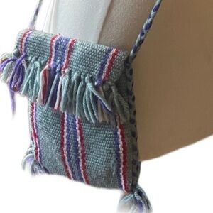 Colombian handmade wayuu woven knit Crossbody flap fringe bag 6x7”