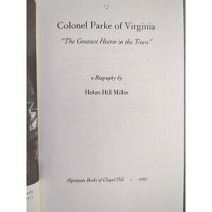 This biography of Colonel Parke of Virginia, titled "The Greatest Hector in the Town," is a must-read for history enthusiasts. Written by Helen H. Miller and published by Algonquin Books of Chapel Hill in 1989, this hardcover book is filled with 210 pages of fascinating details about the life of this remarkable individual.