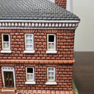 The Colonial Williamsburg George Wythe House by Lefton is a ceramic porcelain building made in China in 1996. This vintage piece features a light-up design and is part of a historic village house collection. Perfect for village dioramas, this retired collectible adds a touch of authenticity to any historical memorabilia display.
