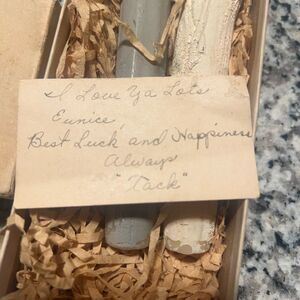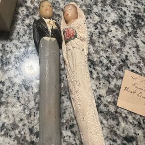 Charming wedding candle set from Colonial Candle Co. Features a bride and groom design. Perfect for special occasions. Groom has a little loose head but not ripped or off at all. From smoke free home. These are beautiful!!!!! Includes a telegram from the 1940’s.