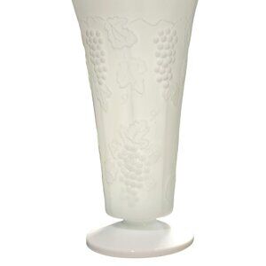 This elegant Colony Harvest vase features a classic grape vine and leaves design in raised relief, perfect for enhancing any home decor with its timeless milk glass charm.