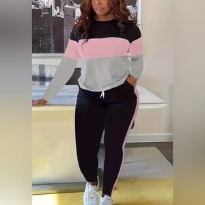 Chic plus size 2 piece knit long sleeve pull over top and joggers with tie elastic waist. Joggers has pockets. 1XL 42-44 bust; 36-38 waist. Never worn. Selling because too small for me.