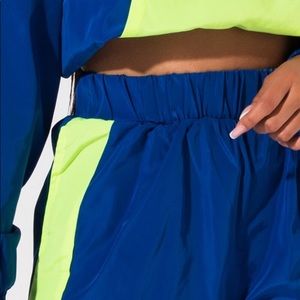 A nylon based, lightweight, athletic short complete with a thick, elastic waistband, color blocked design and mini hem.