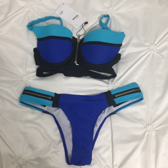 Teal and Cobalt Blue Set with adjustable and functioning zippers. Runs true to size. Never worn & New with tags.