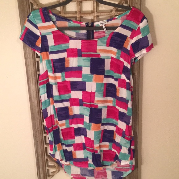 Women’s Short sleeve blouse with cute zipper closure in the back.