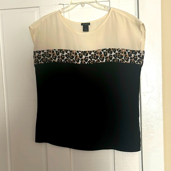 Size small. Perfect for work or a date! Fun leopard print to break up the solid colors.