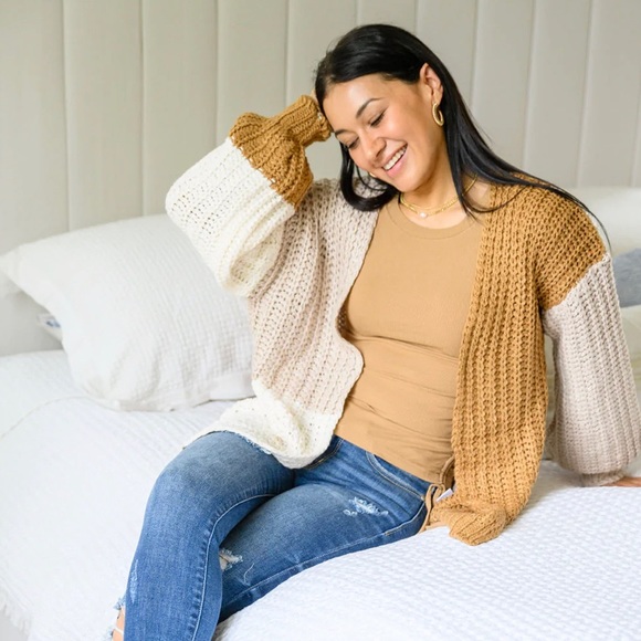 We're wearing the Carry On For Love Color Block Knit Cardigan on repeat this season! Were obsessed with the shades of neutral and brown tones that are absolutely perfect for Fall! Featuring an open front, with a drop shoulder and slouchy sleeves in a chunky knit that will keep you cozy all day long!