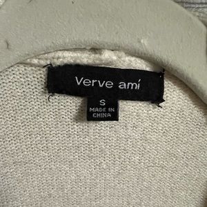 A cozy cardigan with front pockets and a rolled front detail. The colors are neutral with a pop of light pink. A great piece for transition weather!