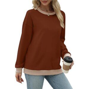 Color Block Crewneck Sweatshirt with Ribbed Trim – Velvety Soft Loose Fit Top