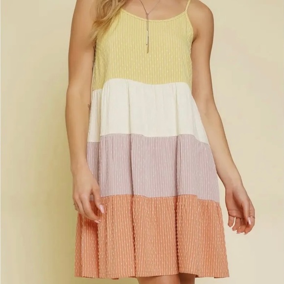 Colorblock Dress Adjustable Straps Contrast Stitches 90% Rayon, 10% Spandex